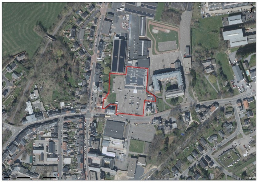 Ce projet vise l’extension d’une surface commerciale Intermarché à Herve, le long d’une route régionale. Le projet prévoit d’agrandir les bâtiments commerciaux, la quantité de panneaux solaires, et le parking. Herve possède plusieurs grandes surfaces commerciales localisées proches les unes des autres. Dans le cas du magasin Intermarché, la superficie de la parcelle est assez réduite et a donc demandé des réflexions par rapport à la gestion des eaux pluviales et à l’intégration du milieu naturel au sein de celle-ci.