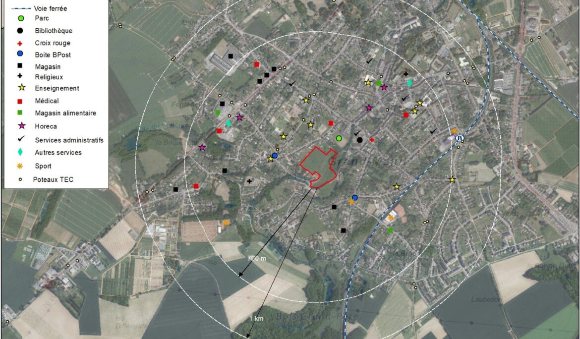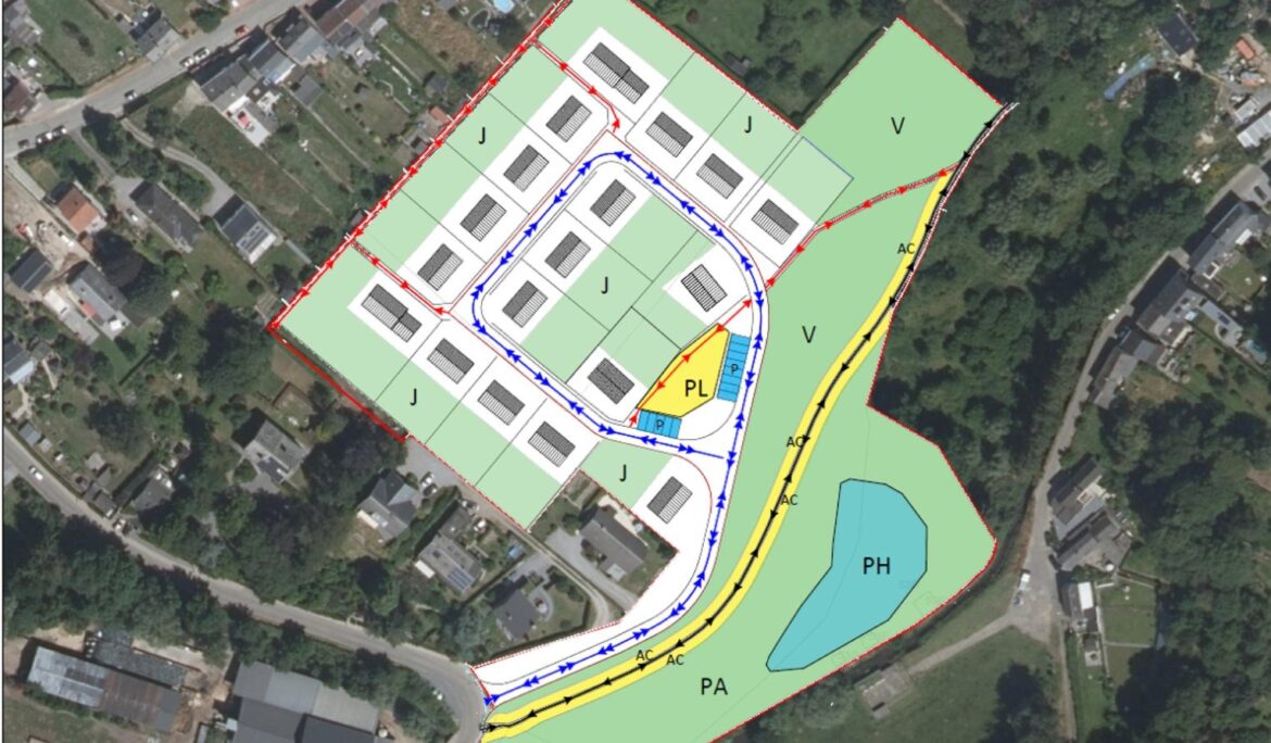Le projet prévoit la création de 18 logements, uniquement sous forme de maisons 4 façades, avec une placette de rencontre et 13 parkings publics pour les visiteurs. L’ensemble de ces logements est desservi par une nouvelle voirie formant une boucle fermée. Le projet prévoit également le remise à neuf de sentiers pédestres. Ce projet profite d’une localisation idéale dans le centre de la ville de Gembloux, à proximité de nombreux services et équipements. Cependant, il prévoit une densité assez faible et uniquement des maisons 4 façades. D’autres problématiques ont été soulevées tel que la localisation de certaines infrastructures en zone d’espace vert au plan de secteur, le bassin d’orage en zone inondable, ou encore de nombreuses vues depuis les quartiers voisins. L’étude a dès lors conclu en plusieurs alternatives pour le projet, afin de l’intégrer au mieux à son quartier et son environnement.