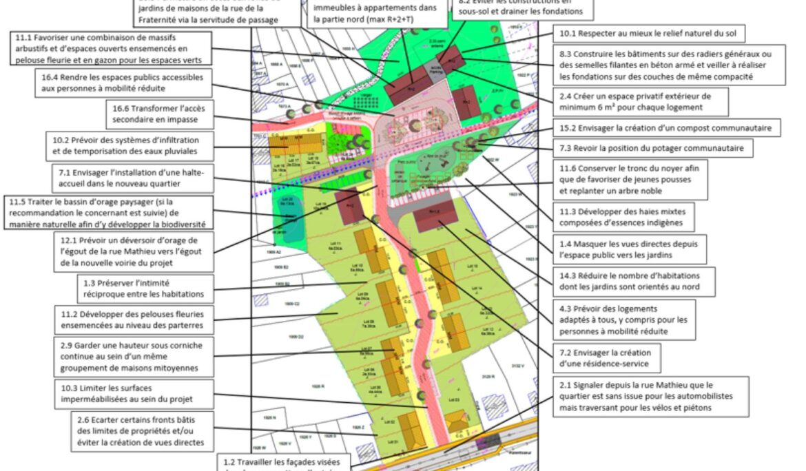 Ce projet prévoit la création d’une cinquantaine de logements dont une moitié de maisons et une moitié d’appartements. Ces logements seront desservis par de nouvelles voiries, et l’aménagement de cheminements piétons et d’espaces publics dédiés aux usagers faibles ou au stationnement est également prévu.