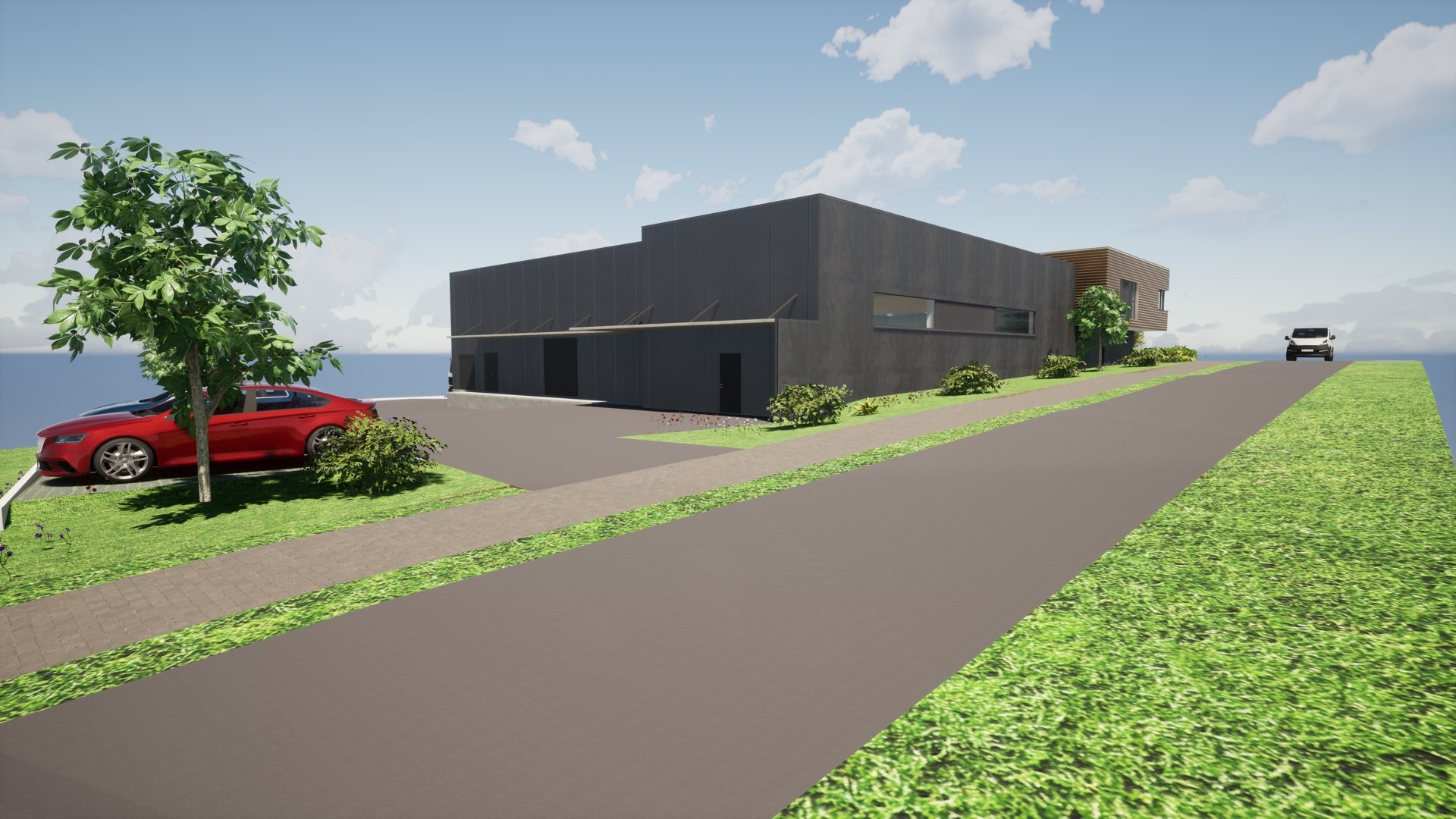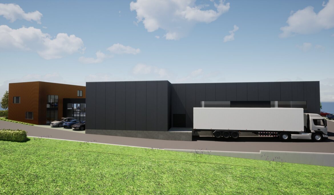 Construction des bureaux d’une société et de son hall de production.