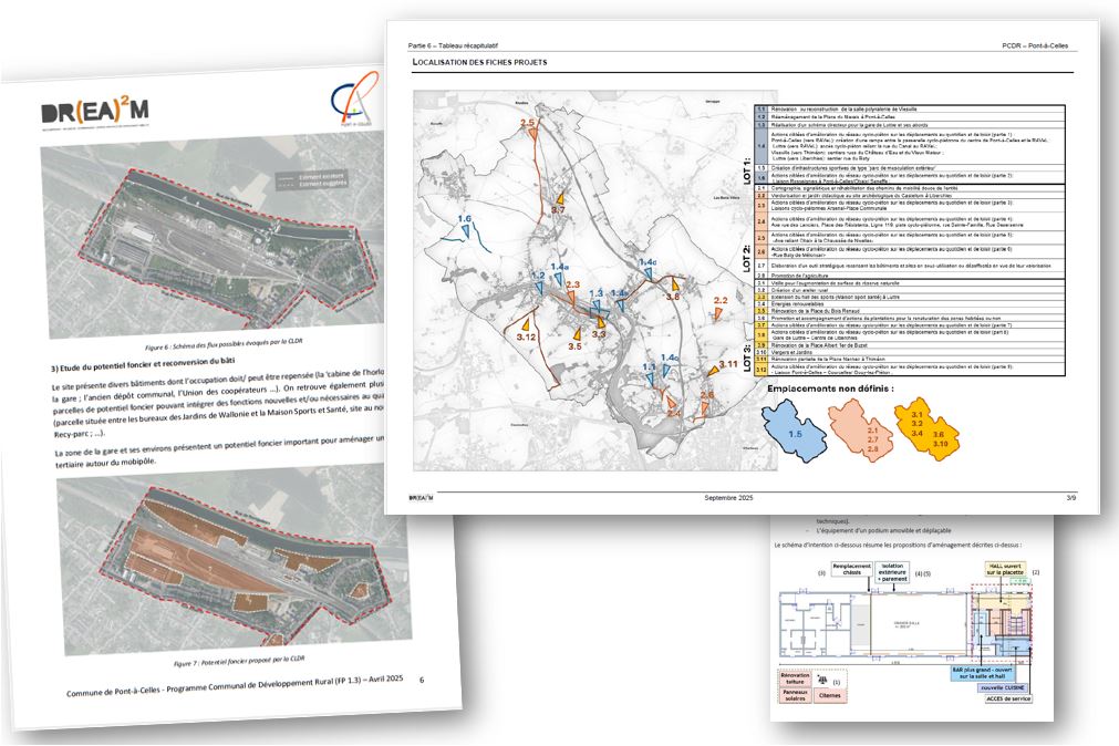 La stratégie a permis d’établir une vingtaine de fiches-projet. Ces bases de réflexion poussées doivent faciliter la mise en place de projets aussi variés que la rénovation d’une salle polyvalente, l’amélioration et la mise en avant des réseaux cyclables et de sentiers, la réalisation d’un schéma directeur pour la gare de Luttre et ses abords, la promotion de l’agriculture, l’étude globale sur la reconversion de site désaffectés et de bâtiments sous-utilisés, ou encore la rénovation de places publiques.