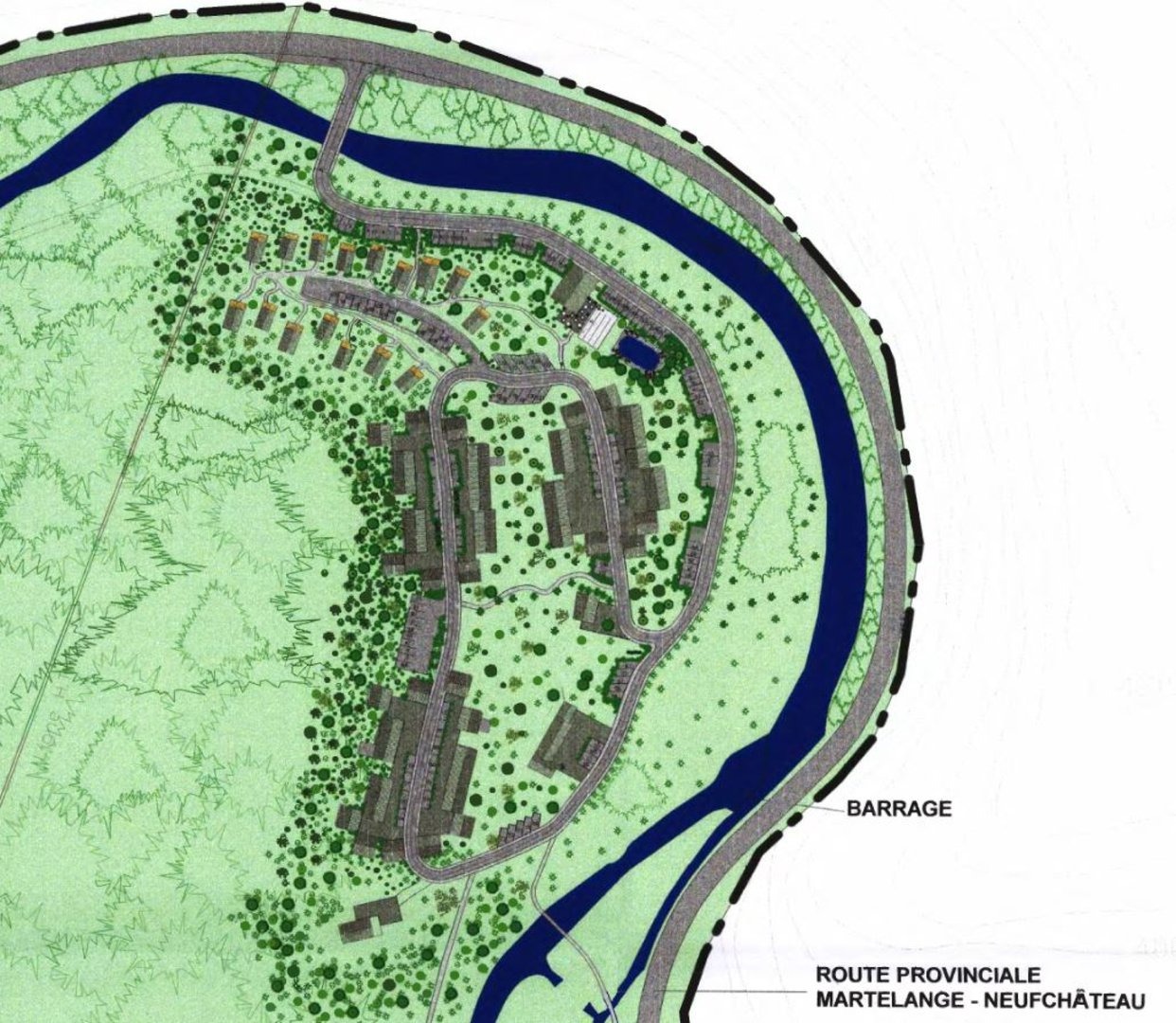 Le projet prévoit la création d’un village de vacances composé de 28 hébergements de type « cabane » d’une superficie d’environ 25 m². L’implantation des hébergements est prévue de manière à permettre une intimité maximum pour chaque hébergement et tient également compte des contraintes du relief. La zone de convivialité est implantée au centre du site, près de la zone d’accueil où le dénivelé est moins important. Les espaces de loisirs tels que les grills et saunas sont, eux, dispersés sur l’ensemble du site.