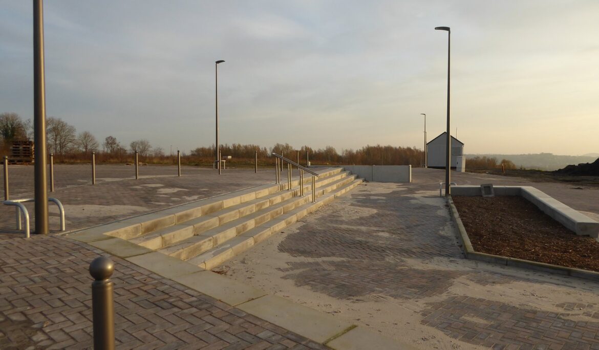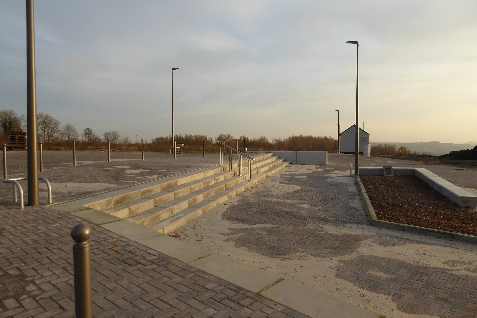 Le projet d’infrastructure comprend la création d’une place publique servant d’entrée principale au site, d’une voirie type zone résidentielle comprenant des espaces de stationnement et quelques zones de plantation et d’une voirie principale permettant la connexion au réseau viaire existant. La placette a été conçue de manière a reprendre, en partie, le relief existant tout en permettant la création d’une zone de stationnement et d’une esplanade.